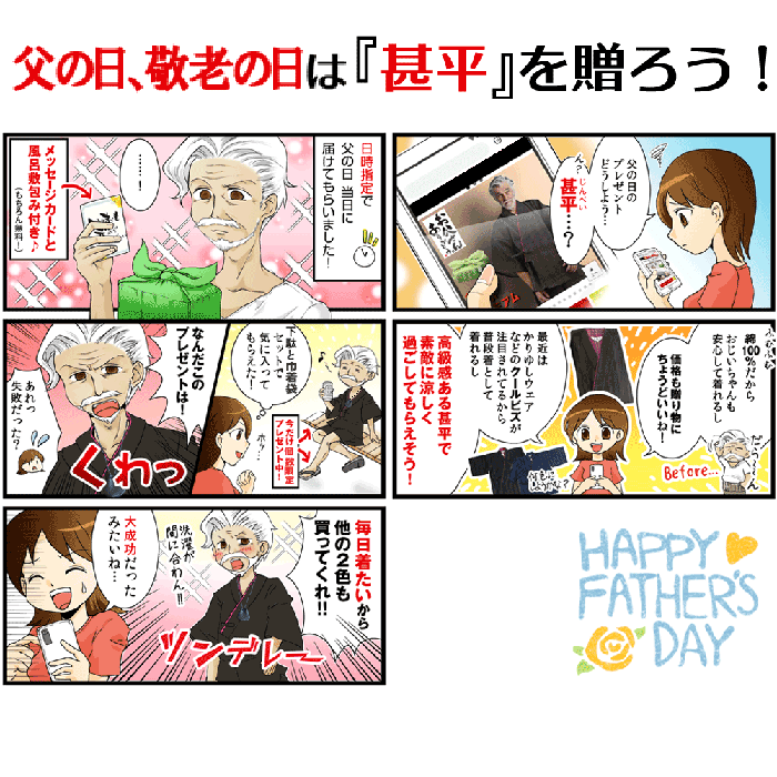 父の日 ギフト 甚平 のお客様からの声 父の誕生日も6月なので、父の日 プラス お誕生日 プレゼント というこうで、奮発しました。