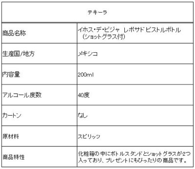 【仕様】●内容量:200ml●生産国:メキシコ●メーカー:スリーアローズ【検索用キーワード】スリーアローズ すりーあろーず threearrows 東栄貿易 トウエイボウエキ イホス・デ・ビジャ レポサド ピストルボトル (ショットグラス付)200ml イホス・デ・ビジャ レポサド ピストルボトル 200ml 200ミリリットル 1本 バラ売り 40度 40° スピリッツ スピリッツ テキーラ イホス・デ・ビジャ レポサド ピストルボトル ピストルボトル 洋酒 その他洋酒ピストル型ボトル