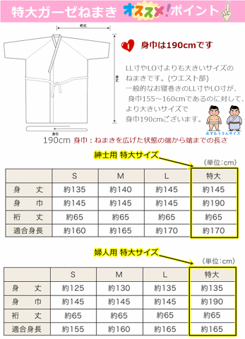 ●身巾190cmあるため、従来の寝巻きでは窮屈な思いをされていた方やゆったり着たい方にも適しています。